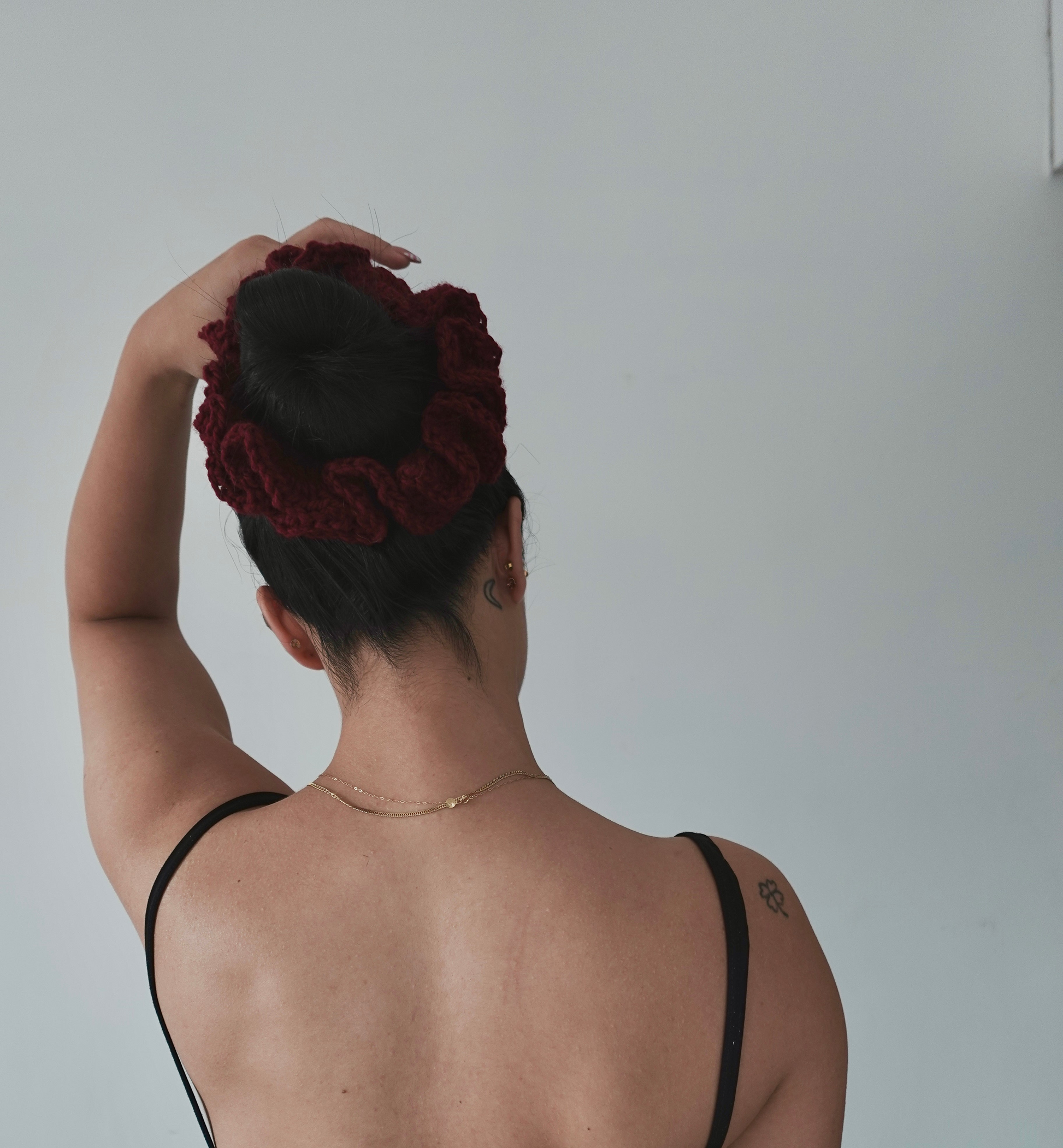 A little cloud of texture for your hair. Our Crochet Ruffled Scrunchie is hand-worked stitch by stitch to create that plush, wavy halo you’ll keep reaching for on messy-bun mornings, dress-up nights, and everything in between.