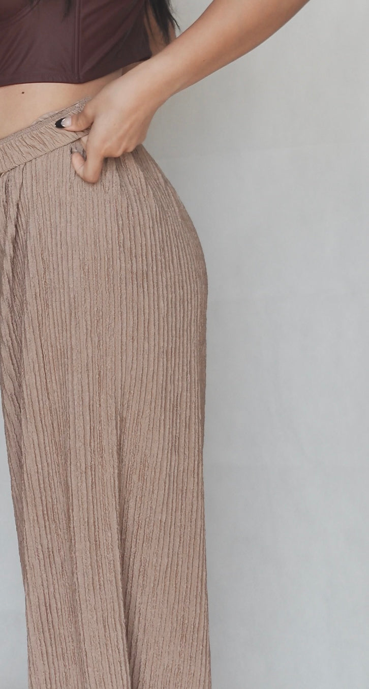 Effortlessly soft, endlessly wearable. The Richie Pants were made for days that blend into nights. Cut from a breathable, crinkled fabric with a relaxed silhouette, they move with you—fluid and flattering in all the right ways. Featuring an elastic high-waistband for a cinched yet comfy fit, these pants are a go-to for everything from a quick coffee run to an elevated dinner moment.